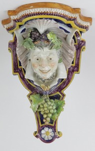 26 - GINORI MAJOLICA BACCHUS WALL SCONCE SHELF Ginori Majolica wall sconce shelf depicting Bacchus. Marked Ginori to verso. Measures 11" height.