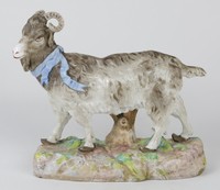 29 - VION & BAURY PORCELAIN MOUNTAIN GOAT FIGURINE Dresden style porcelain mountain goat figure. Holds green anchor mark to underside, believed to be Vion & Baury. Measures 8 1/2" length x 7 1/4" height.
