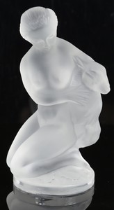 48 - LALIQUE FROSTED CRYSTAL 'DIANA THE HUNTRESS' Lalique French frosted crystal figurine titled 'Diana the Huntress with Fawn'. Signed to underside. Measures 4 1/2" height.