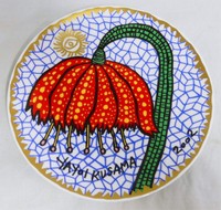 12 - YAYOI KUSAMA 'RED FLOWER' CERAMIC PLATE Yayoi Kusama (Japanese, b. 1939) glazed ceramic plate. Titled 'Red Flower'. Signed and dated 2002. Marked and numbered 209/300 to verso. Measures 8 7/8" diameter.