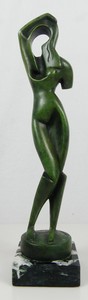 17 - ALEXANDER ACHIPENKO 'WOMAN COMBING HAIR' BRONZE Alexander Archipenko (Russian/American, 1887-1964) bronze sculpture with green patina. Titled 'Woman Combing Her Hair'. Signed and dated 1915 to base. Measures 13 1/2" height + 1 1/4" marble base.