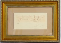 20 - SALVADOR DALI 'VISION OF VENICE' ENGRAVING Salvador Dali engraving from the Visions of Venice Series depicting a Gondola. Signed lower right and numbered 245/300 lower left. Measures 13 1/2" x 6 1/2" + 5" mat & frame.