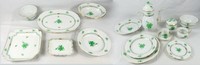 21 - 45pc HEREND CHINESE BOUQUET GREEN PORCELAIN 45 pieces of Herend porcelain in the Chinese Bouquet Green pattern. Includes 8 dinner plates-9 7/8", 8 salad plates-8 1/8", 8 bread and butter plates-6 1/8", 5 demitasse cups-3 1/4", 6 saucers-4 3/8", 1 coffee pot-10", 1 creamer-4 3/4", 1 covered sugar-4 1/4", 1 rectangular tray 7" x 5 1/2", 1 square tray-10", 2 oval vegetable bowls-9 3/4", 1 bowl-9 1/2", 1 round bowl-6 1/4" and 1 serving platter-15" x 11". Each piece marked to underside.
