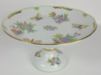 37 - HEREND QUEEN VICTORIA PORCELAIN CAKE STAND Herend porcelain cake stand in the Queen Victoria (Green Border) pattern. Measures 9 1/4" diameter x 5 3/4" height. Marked to underside.