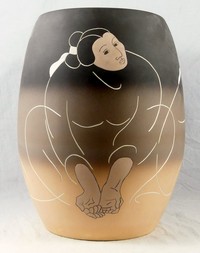 3 - RUDOLPH CARL GORMAN CERAMIC TRILOGY VASE Rudolph Carl Gorman (American, 1931-2005) ceramic vase depicting seated Native American figures. Signed to lower edge and inscribed Potters Proof. Signed, inscribed Greg Grycner Ltd. Ed. and titled to underside. Measures 17 1/2" height.