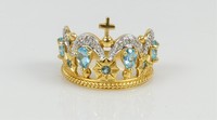 46 - 14kt YELLOW GOLD & AQUAMARINE CROWN RING 14kt yellow gold and aquamarine ring in the form of a princess crown. Marked 14K. Ring size 7.5. Total weight 5.4g.