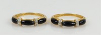 47 - 2pc 10kt YELLOW GOLD DIAMOND ONYX RINGS A pair of 10kt yellow gold rings with diamond and onyx. Each is ring size 8 and is marked 10kt , .417. Total weight 4.9ozt.