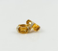 49 - PR 14kt YELLOW GOLD & CITRINE HUGGIE HOOP EARRINGS Pair of 14kt yellow gold huggie earrings with citrine and small diamond accents. Each hinged and marked 14K, 585. Each measures 16mm x 15mm. Total weight 5.9g.