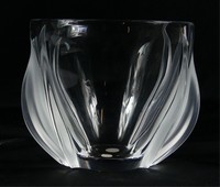 8 - LALIQUE CRYSTAL DEUX TULIPES VASE Lalique frosted crystal Deux Tulipes vase. Signed to underside. Measures 5" width x 4" height.