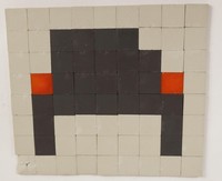 13 - SPACE INVADER PA_401 CERAMIC TILE MOSAIC Ceramic tile mosaic PA-401 attributed to Invader (French, b. 1969). This street art was removed from a building in Paris on the intersection of Rue Linné and Rue Cuvier. Measures 7" x 6 1/4".