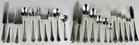 17 - 165pc CHRISTOFLE 'AMERICA' SILVERPLATE FLATWARE 165 pieces of Christofle French silver plated flatware in the 'America' pattern. Includes 12 spoons-5 1/8", 12 spoons-5 1/2", 12 spoons-8 1/8", 12 spoons-7 1/8", 12 demitasse spoons-4", 12 3-tine forks-6", 12 forks-7 1/8", 12 forks-7 1/4", 23 forks-8 1/8", 12 butter knives-8 1/4", 12 knives-8", 12 knives-9 3/4", 1 gravy ladle-7 1/4", 1 salad serving fork-9 1/2", 1 salad serving spoon-9 3/8", 1 fish serving fork-8 3/4", 1 fish serving knife-11", 1 serving fork-9 5/8", 1 serving spoon-9 7/8", 1 carving knife-12 3/4", 1 two-tine serving fork-10 3/8" and 1 pie server-10 1/4". Each piece properly hallmarked.