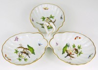 31 - HEREND ROTHSCHILD BIRD 3-PART PORCELAIN TRAY Herend porcelain 3-part serving tray in the Rothschild bird pattern. Marked to underside. Measures 12" width.