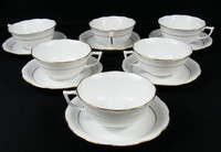 36 - 12pc HEREND GOLDEN EDGE TEACUPS & SAUCERS Twelve pieces of Herend porcelain in the Golden Edge pattern. Includes 6 teacups-5" and 6 saucers-5 3/4". Each piece marked to underside.