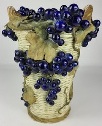 41 - LARGE AMPHORA BASKET-FORM VASE w GRAPES Large Amphora Austrian porcelain vase in the form of a fruit basket decorated with grapes and vines. Marked Amphora, Austria, holds crown and numbered 11537 58 to underside. Measures 11 3/4" height x 10" width.
