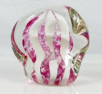 51 - ROBERT HAMON STUDIO ART GLASS PAPERWEIGHT Robert Hamon studio art glass freeform paperweight. Pink and white. Signed to underside. Measures 4 3/4".