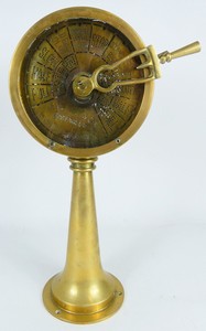 12 - J.W. RAY BRASS SHIP'S TELEGRAPH J.W. Ray & Co, Liverpool & London Nautical brass ship telegraph. Measures 17 1/4" height. Face measures 7" diameter.