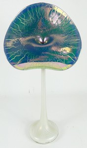 15 - STUART ABELMAN JACK IN THE PULPIT ART GLASS VASE Stuart Abelman iridescent studio art glass jack in the pulpit vase with craquelle finish. Signed, numbered and dated 1989 to underside. Measures 17 3/4" height.