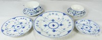 25 - 81pc ROYAL COPENHAGEN BLUE FLUTED HALF LACE CHINA 81 pieces of Royal Copenhagen porcelain dinnerware in the blue fluted half lace pattern. Includes 12 dinner plates-10 1/8", 12 bread & butter plates-6 1/4", 11 salad plates 7 5/8", 12 handled soup bowls-6", 12 soup saucers-6 1/2", 10 teacups-4 3/4", 11 saucers-5 7/8" and 1 saucer-5 1/4". Each piece marked to underside.