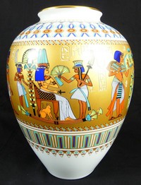 26 - GERHARD FUETTERER KAISER GERMAN PORCELAIN VASE German porcelain vase with Egyptian motif by Gerhard Fuetterer for Kaiser. Titled 'Scenes from the Tomb of Tutankhamun'. Marked and numbered to underside. Measures 10 1/4' height.