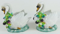 27 - PR JOHANSEN ROTH PORCELAIN SWANS Pair of German porcelain swans. Each holds JR mark to underside, probably Johansen Roth Meissen. Each measures 5" height x 5" length.