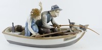 33 - LLADRO 'FISHING WITH GRAMPS' PORCELAIN FIGURINE Lladro porcelain figure depicting a boy and his grandpa on a fishing boat. Titled 'Fishing with Gramps' #5215. Marked to underside. Measures 16" length.