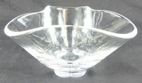 35 - STEUBEN DONALD POLLARD TREFOIL CRYSTAL BOWL Steuben crystal bowl designed by Donald Pollard having three sided cloverleaf motif. Signed to underside. Measures 6 1/4" width.