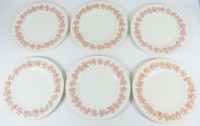 38 - 6pc WEDGWOOD QUEENSWARE PINK & CREAM PLATES 6pc Wedgwood Queen's Ware pink and cream porcelain plates. Each marked to underside and measures 10 3/4" diameter.