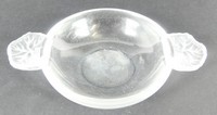 44 - LALIQUE CRYSTAL HONFLEUR HANDLED BOWL Lalique crystal Honfleur bowl with two frosted geraniun handles. Signed Lalique France to underside. Measures 5 7/8" length.