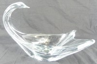 46 - DAUM SWAN-FORM CRYSTAL CENTERPIECE BOWL Daum French crystal centerpiece bowl in the form of a swan. Signed Daum France. Measures 14" length x 10" height.
