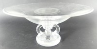 49 - STEUBEN CRYSTAL SCROLL FOOTED CENTERPIECE BOWL Steuben crystal centerpiece bowl or compote raised of scroll-form base. Signed to underside. Measures 9 3/4" diameter.