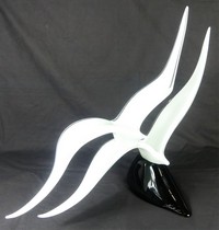 9 - LICIO ZANETTI MURANO GLASS DOUBLE BIRD SCULPTURE Licio Zanetti Murano art glass sculpture depicting two white birds on a black base. Signed to edge of base. Measures 29" length x 21 1/2" height.