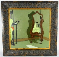 16 - MATT LIVELY 'WINDOW' OIL PAINTING ON BOARD Matt Lively (American, 20th C) oil painting on board depicting an interior scene with window. Signed lower left. Measures 14 3/4" x 14 3/4" + 4" frame.