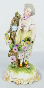 23 - MEISSEN 'GIRL w GARLAND' PORCELAIN FIGURINE Meissen porcelain figure depicting a girl holding garland of flowers. Marked to underside and numbered 163. Measures 6 3/4" height.