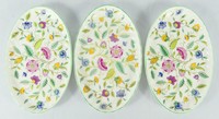 27 - 3pc MINTON HADDON HALL OVAL PORCELAIN TRAYS Three Minton porcelain dishes of oval form in the Haddon Hall pattern. Each marked to underside and measures 8 1/2" x 5 1/4".