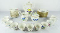 2 - 37pc MEISSEN FLORAL PORCELAIN TEA SET Meissen porcelain tea set having scalloped gilt edges and decorated with flowers. Includes 1 teapot-9 1/2", 1 creamer-5", 1 covered sugar-5", 11 teacups-4", 10 saucers-5 1/4", 11 plates-6 3/4", 2 round dishes-5 1/4. Each piece marked to underside, some marked as factory seconds.