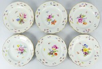 3 - 6pc MEISSEN FLORAL PORCELAIN DINNER PLATES Six Meissen porcelain dinner plates having a gilt scalloped edge and decorated with flowers. Each marked to underside and measures 9 3/4" diameter.