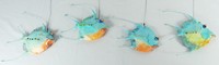 44 - 4pc TODD WARNER BLUE FISH SCULPTURE Todd J. Warner (American, b. 1945) painted wood, clay, and metal blue fish inset with jeweled decorations, Measuring approximately 10" in height and length.