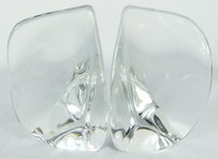 49 - PR DAUM MODERNIST CRYSTAL BOOKENDS Pair of Daum Modernist crystal bookends. Each signed to side of base and measures 6 1/8" height x 4 1/8" depth.