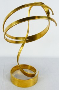 18 - DAN MURPHY BRASS LUCITE ABSTRACT KINETIC SCULPTURE Dan Murphy abstract brass sculpture on lucite base. Signed and dated 1982. Measures 25" height.