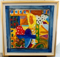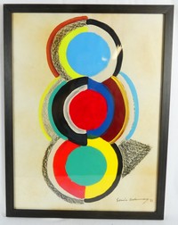 16 - SONIA DELAUNAY MIXED MEDIA ON PAPER Sonia Terk Delaunay (French, 1885-1979) gouache, charcoal and pencil on paper. Signed lower right and dated 1971. Measures 23 1/2" x 17 3/4" + 1" frame.