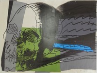 1 - ANDY WARHOL 'SKULLS 160' SIGNED SCREENPRINT Andy Warhol screenprint from the Skulls portfolio, 1976. Skulls (FS II.160). Pencil signed lower right. Stamped to verso "Estate of Andy Warhol'", "Outside of the Published Edition". Each stamp initialed in blue ink F.H. and dated 1988. Sheet measures 39 3/4" x 29 3/4".