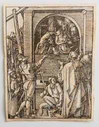 27 - ALBRECHT DURER CHRIST SHOWN TO THE PEOPLE WOODCUT Albrecht Durer woodcut engraving on laid paper 'Christ Shown to the People' from The Small Passion. Monogrammed in the plate. Sheet measures 5 1/4" x 4".