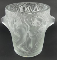 41 - LALIQUE 'GANYMEDE' FROSTED CRYSTAL ICE BUCKET Lalique frosted crystal champagne cooler titled 'Ganymede'. Signed to underside. Measures 9" height.