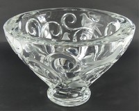 44 - LALIQUE 'VERONE' FROSTED CRYSTAL BOWL Lalique French crystal centerpiece bowl decorated with frosted birds and clear scrolling vines. Signed to underside. Measures 11" diameter x 7 3/4" height.