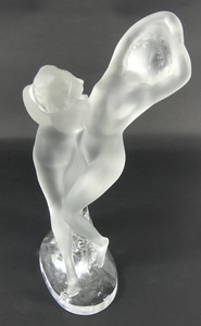 47 - LALIQUE 'DEUX DANSEUSES' FROSTED CRYSTAL FIGURINE Lalique frosted crystal figure of two dancers. Titled 'Deux Danseuses'. Signed to underside of base. Measures 10 1/4" height.