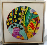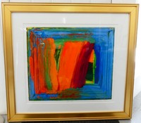 7 - GILLIAN AYRES 'CHERRY RIPE' ACRYLIC ON PAPER Gillian Ayres (British, 1930-2018) mixed media painting on paper. Titled 'Cherry Ripe'. Pencil signed and dated 1993 lower right. Measures 42 3/4" x 42" + 3 3/4" mat & frame.