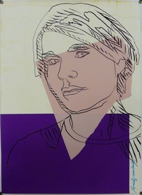 12 - ANDY WARHOL 'SELF PORTRAIT' SIGNED LITHOGRAPH Andy Warhol 'Self-Portrait, 1978' lithograph on heavy paper. Signed in blue marker lower right. Sheet measures 41 1/2" x 29 5/8".