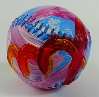 15 - PETER MAX ACRYLIC PAINTED SIGNED BASEBALL Peter Max acrylic painting on baseball. Signed. Measures 2 3/4" x 2 3/4".
