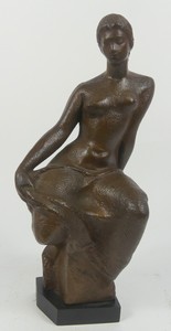 16 - VINCENT GLINSKY BRONZED SEATED NUDE SCULPTURE Vincent Glinsky (Russian 1895-1975) bronzed sculpture depicting a seated nude woman. Signed to side of base. Measures 14 1/4" x 5" x 6".