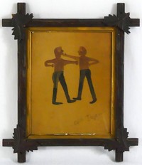 1 - BILL TRAYLOR 'MEN BOXING' GOUACHE ON CARDBOARD Gouache and pencil on paper depicting two men boxing attributed to Bill Traylor (American, 1854-1947). Signed in pencil lower right. Includes Hill Gallery, Birmingham, Michigan receipt from 1983. Viewable measures 9 5/8" x 7 1/2". Frame measures 15" x 12 3/4".